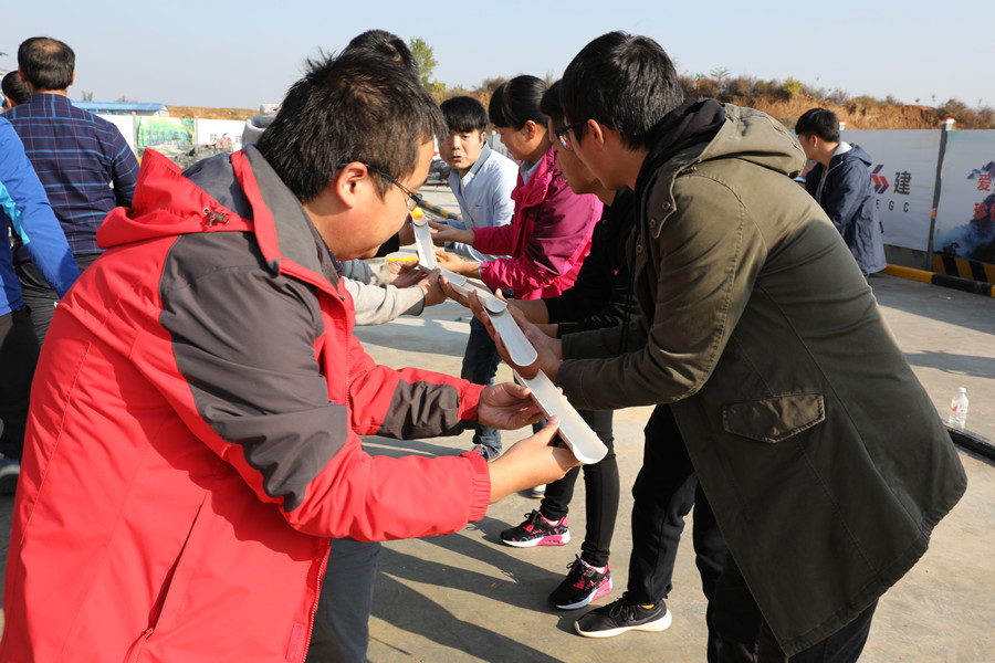 會后,在項目上舉辦了一場別開生面趣味運動會。運動會由安康地區在建項目的第七工程公司、第八工程公司、市政公司、安裝公司4個團隊的40名青年參賽,共設10個比賽項目,分別是搶凳子、吸管運輸、演技傳聲筒、摸石頭過河往返接力等。各參賽選手斗志昂揚,整個活動現場高潮迭起、精彩紛呈、笑聲不斷。活動評選出了優勝獎和參與獎,并為獲獎青年頒發了獎品。