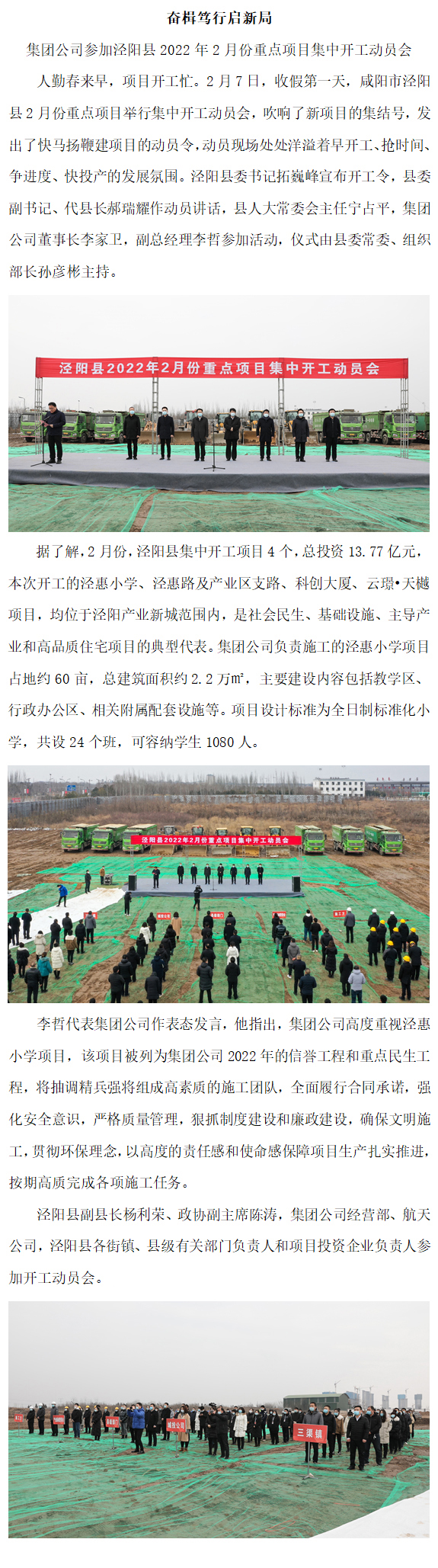 奮楫篤行啟新局——集團(tuán)公司參加涇陽(yáng)縣2022年2月份重點(diǎn)項(xiàng)目集中開工動(dòng)員會(huì)